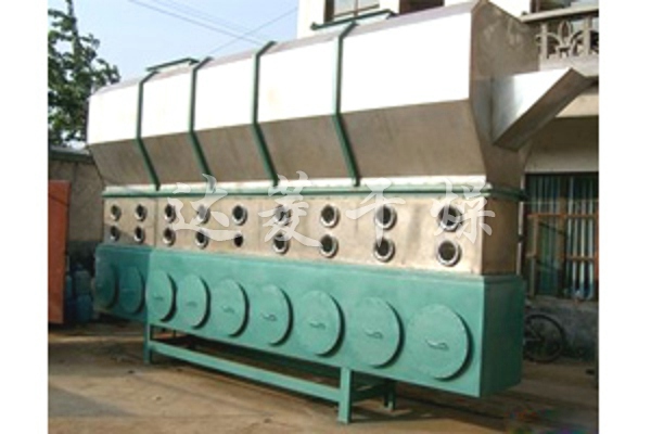 物料自進料口進入機內,在振動力作用下,物料沿水平流化床拋擲,向前連續運動,熱風向上穿過流化床同濕物料換熱后,濕空氣經旋風分離器除塵后由排風口排出,干燥物料由排料口排出。